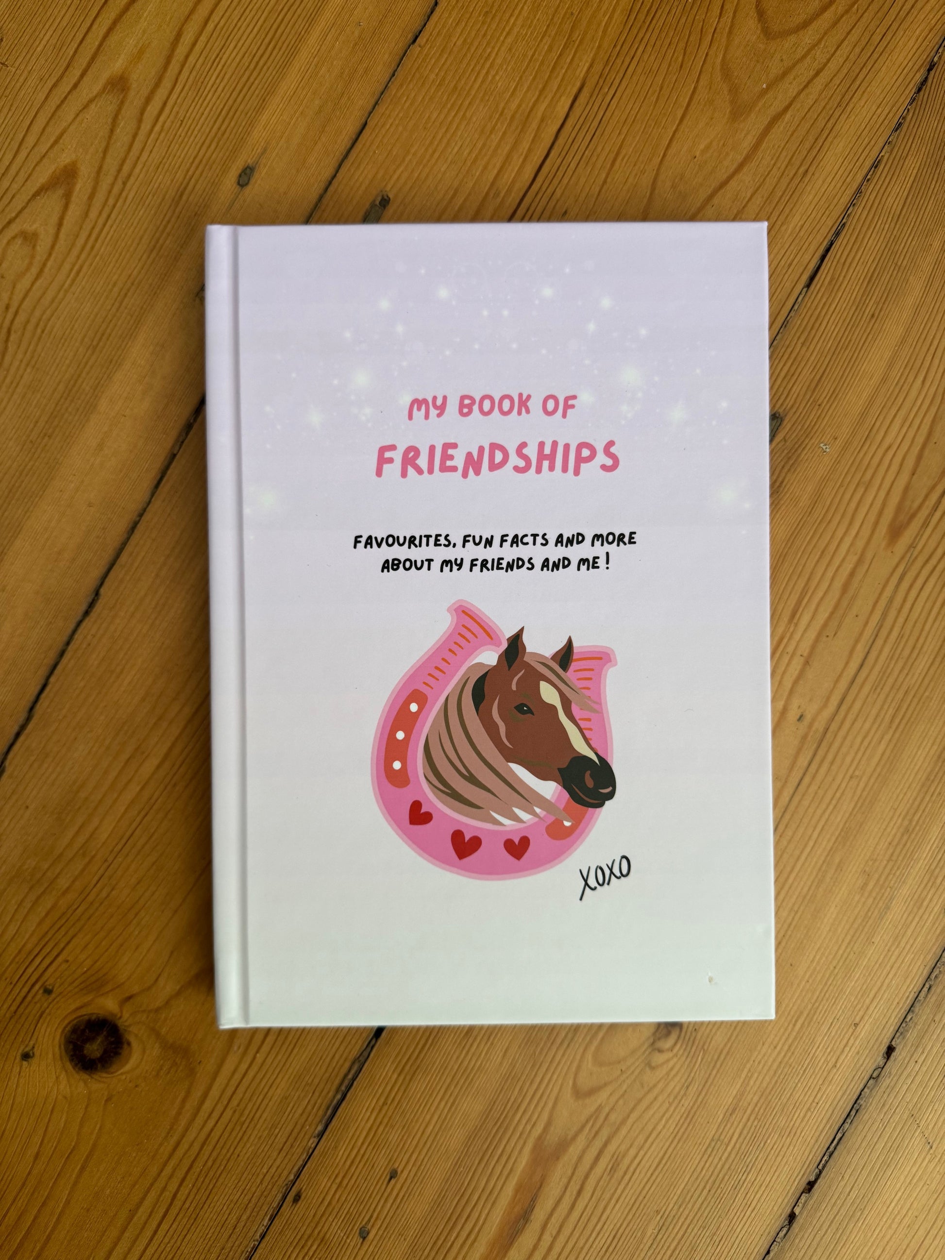 This friendship book boasts a charming horse and horse shoe design on its cover.
